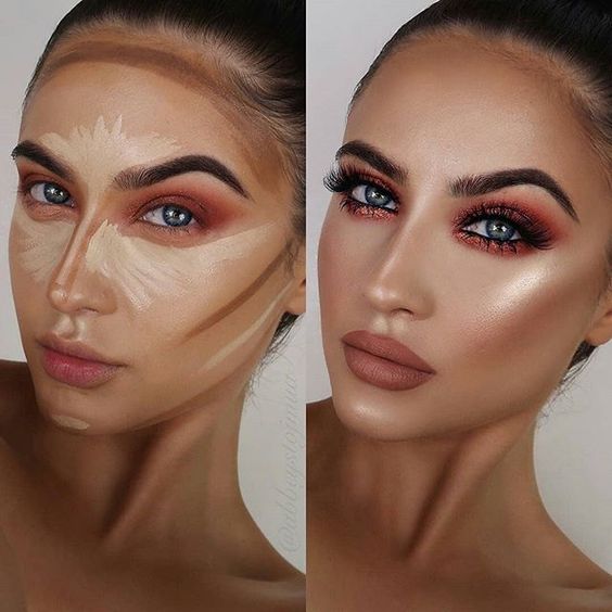 + Màu nâu (Shading) : Giúp tạo khối cho khuôn mặt thon gọn, thanh thoát và sắc nét hơn ở các vùng như : hai bên sống mũi, từ mang tai tới xương hàm, vùng trán gần chân tóc…