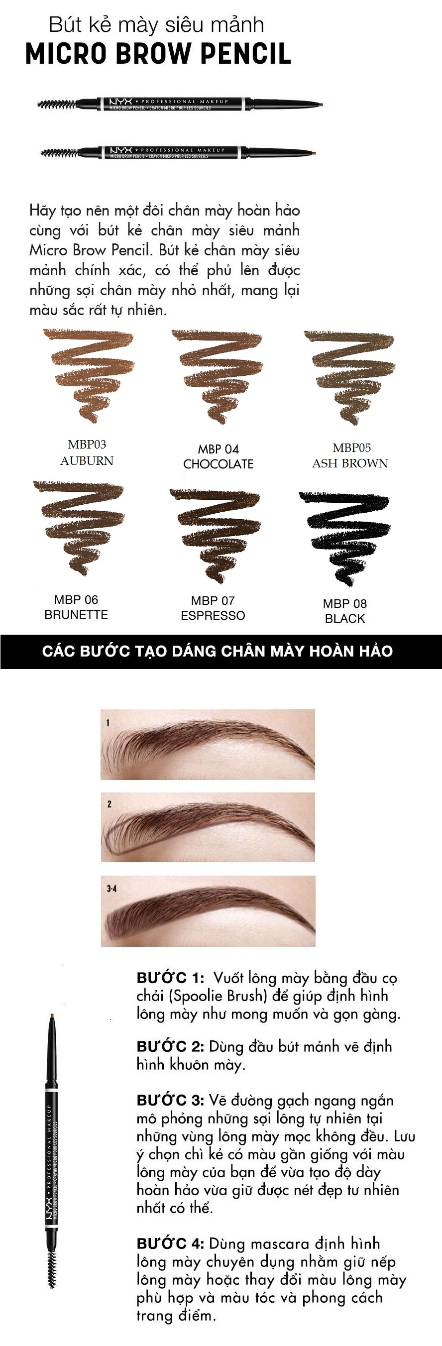 - Lưu ý: Nên chọn chì kẻ có màu gần giống với màu lông mày của bạn để tạo độ dày tự nhiên nhất có thể.