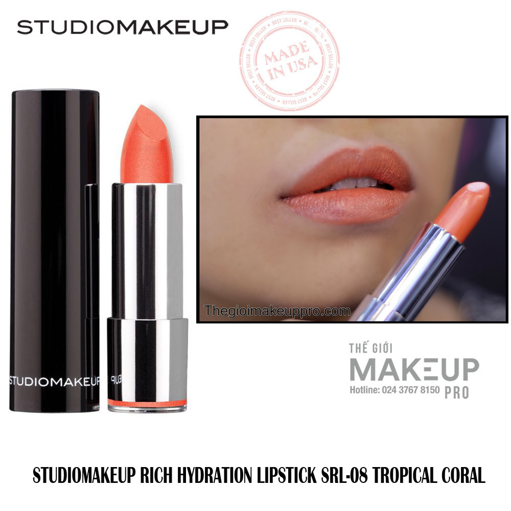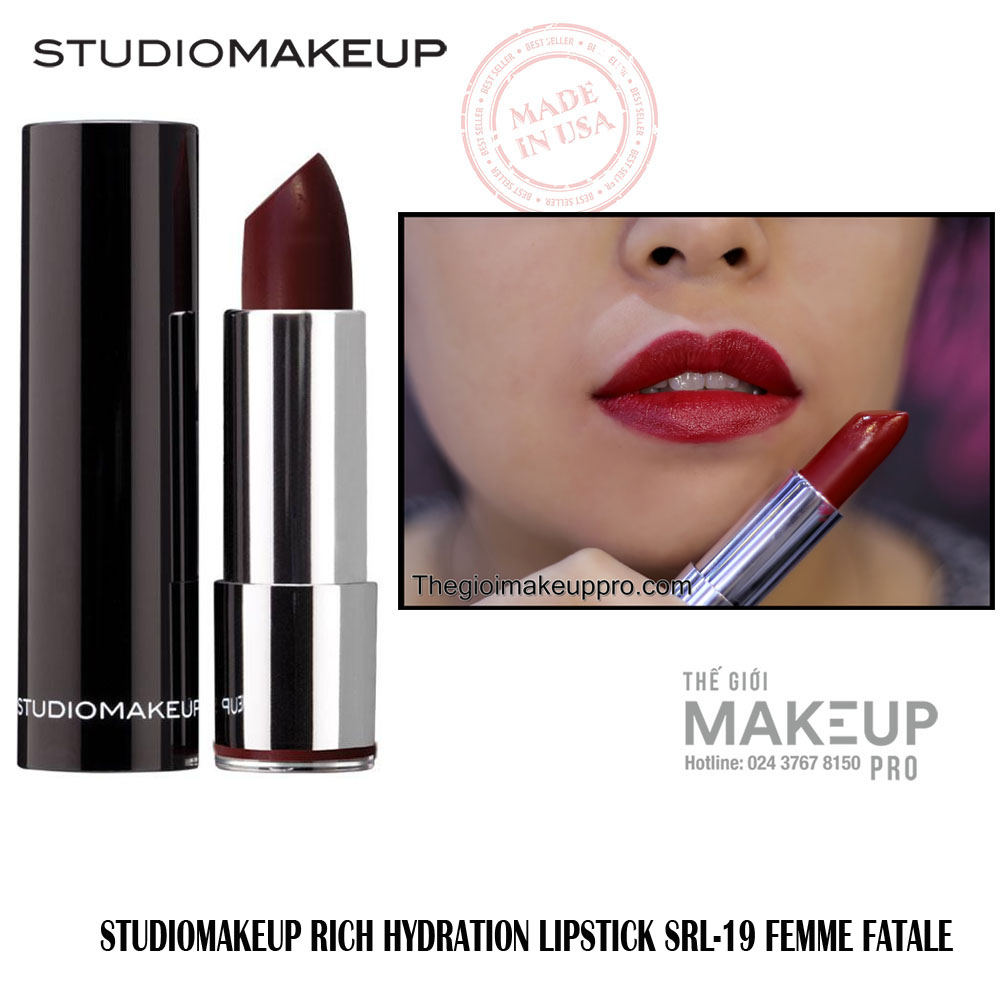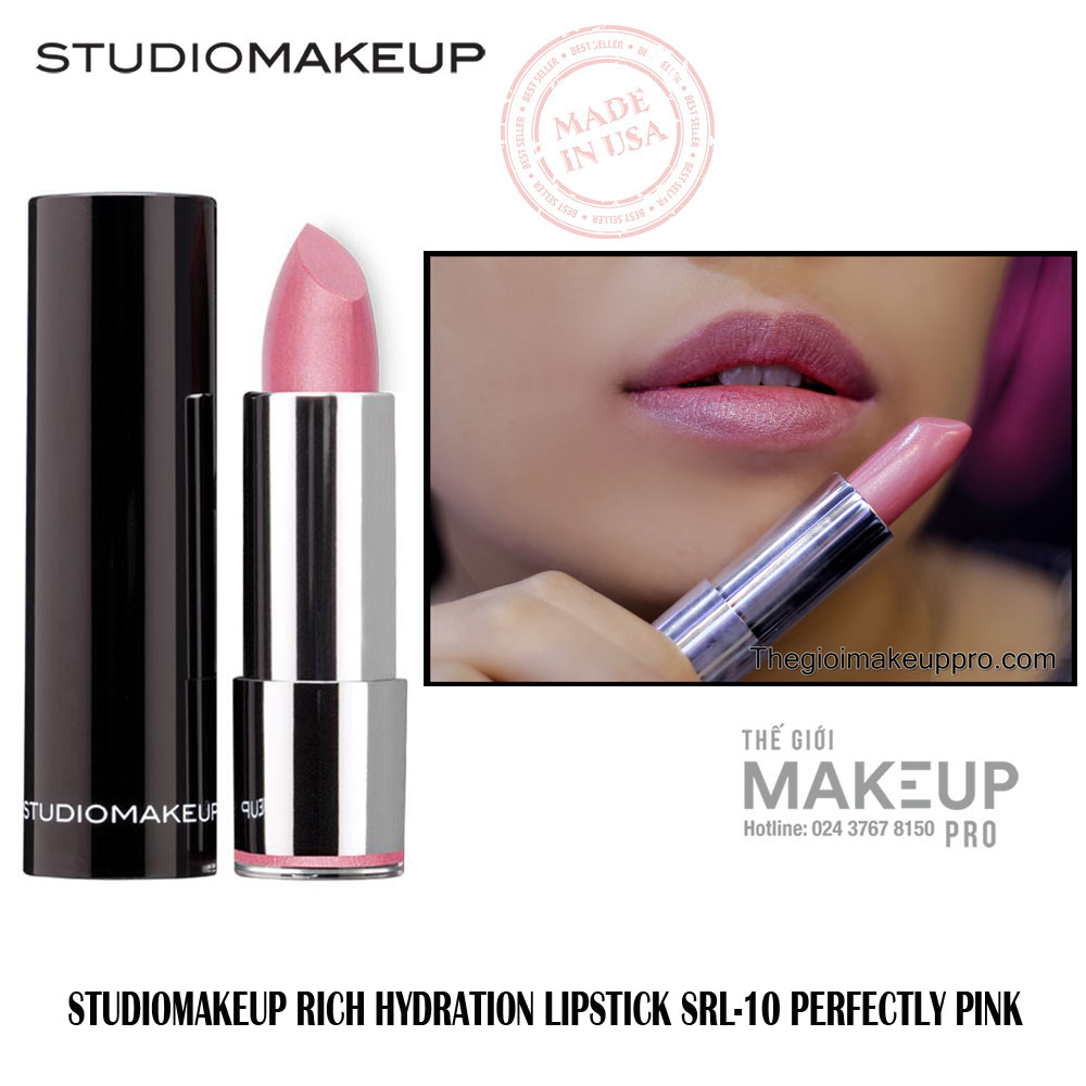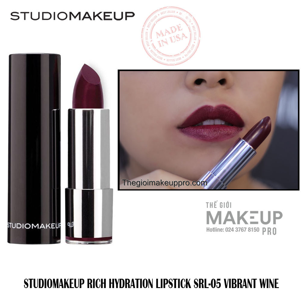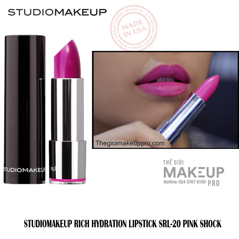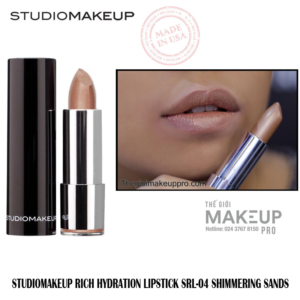 - Son thỏi STUDIOMAKEUP RICH HYDRATION LIPSTICK SRL là dòng son chứa nhiều dưỡng chất bổ sung độ ẩm cho môi, bên cạnh lớp son mịn, son giúp môi mềm và lên chuẩn màu, vẫn giữ được ưu điểm khả năng bám và giữ màu cao suốt nhiều giờ.