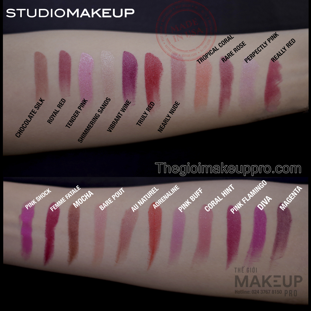 - Son thỏi STUDIOMAKEUP RICH HYDRATION LIPSTICK phù hợp với mọi tone da, và có thể kết hợp được với nhiều xu hướng thời trang khác nhau, xứng đáng là một thỏi son cần thiết của mọi người!