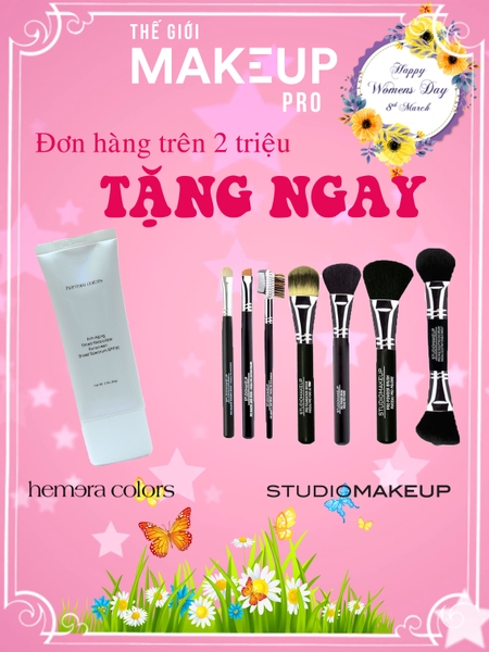 Nhân dịp 8/3, Thế Giới Makeup Pro Khuyến mãi cho các đơn hàng trên 2 triệu (được tặng 01 Kem chống nắng hoặc phụ kiện Studio Makeup trị giá 790K)